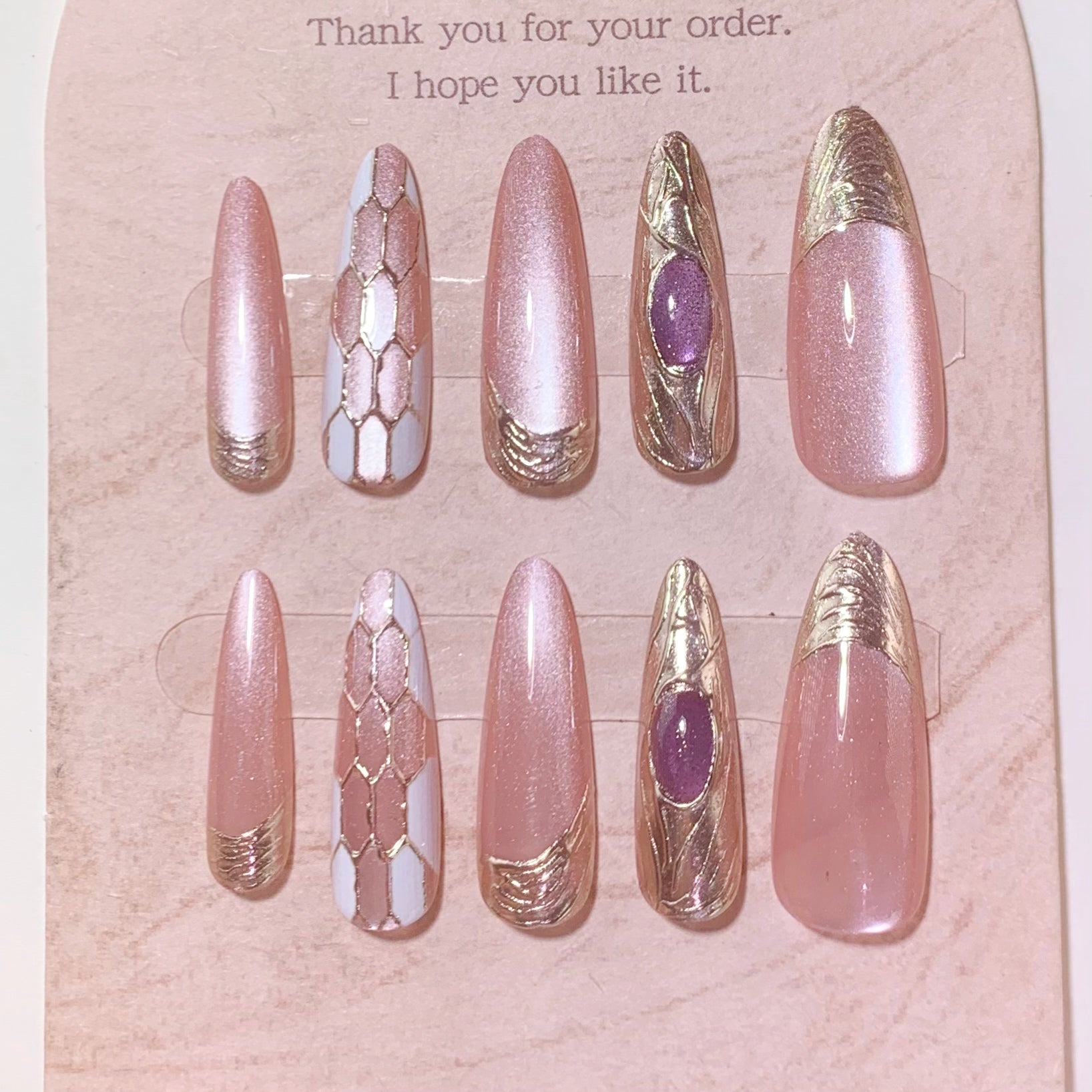 セット内容:完璧に整えられたプレスオンネイル10枚、ネイルチップツールキット