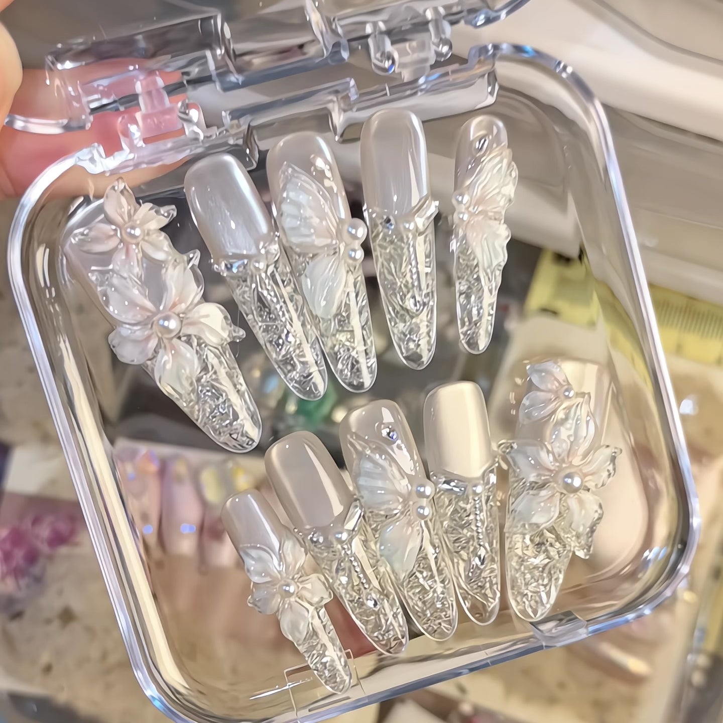 - 接着剤不要:自然な爪を傷めず、手軽に楽しめるインスタントマニキュア