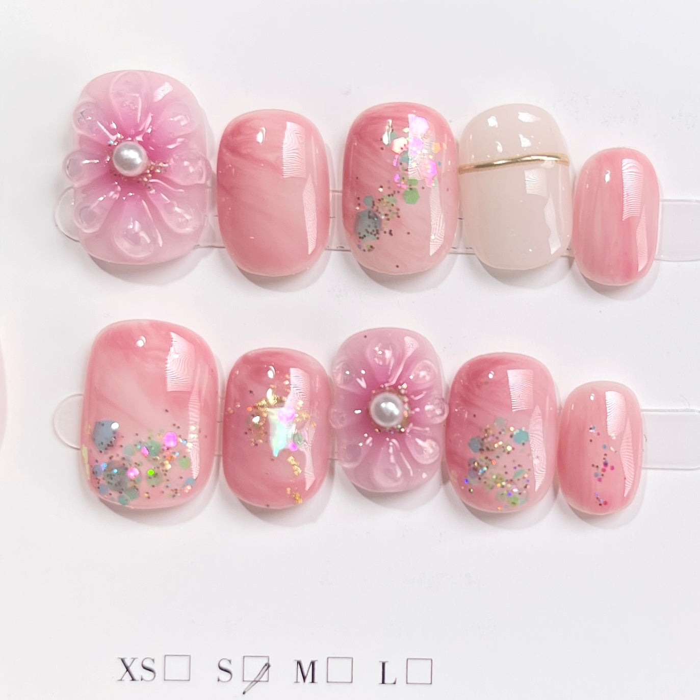 セット内容:完璧に整えられたプレスオンネイル10枚、ネイルチップツールキット